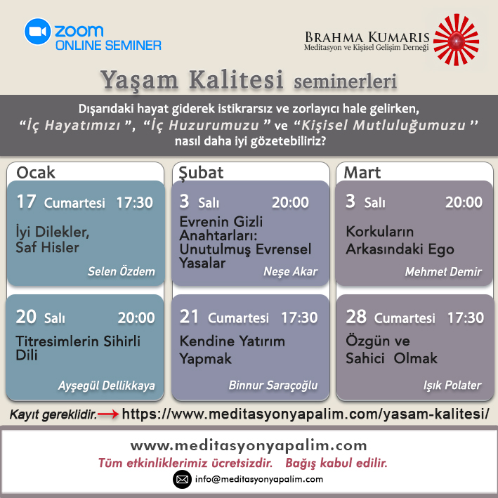 Yaşam Kalitesi seminerleri için < buradan kayıt olun >