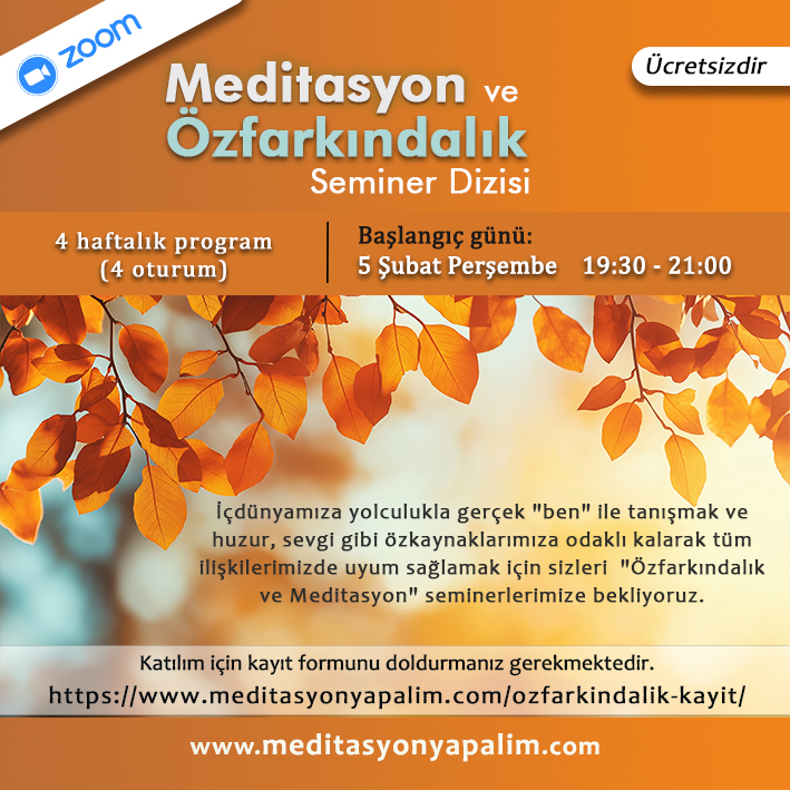 MEDİTASYON VE ÖZFARKINDALIK seminer dizisi için < buradan kayıt olun >